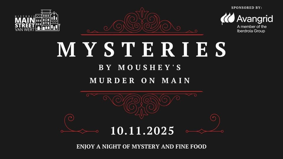 Mystery by Moushey’s Murder on Main helps Main Street Van Wert with a new event! Dinner and a Murder Mystery – yes, please.