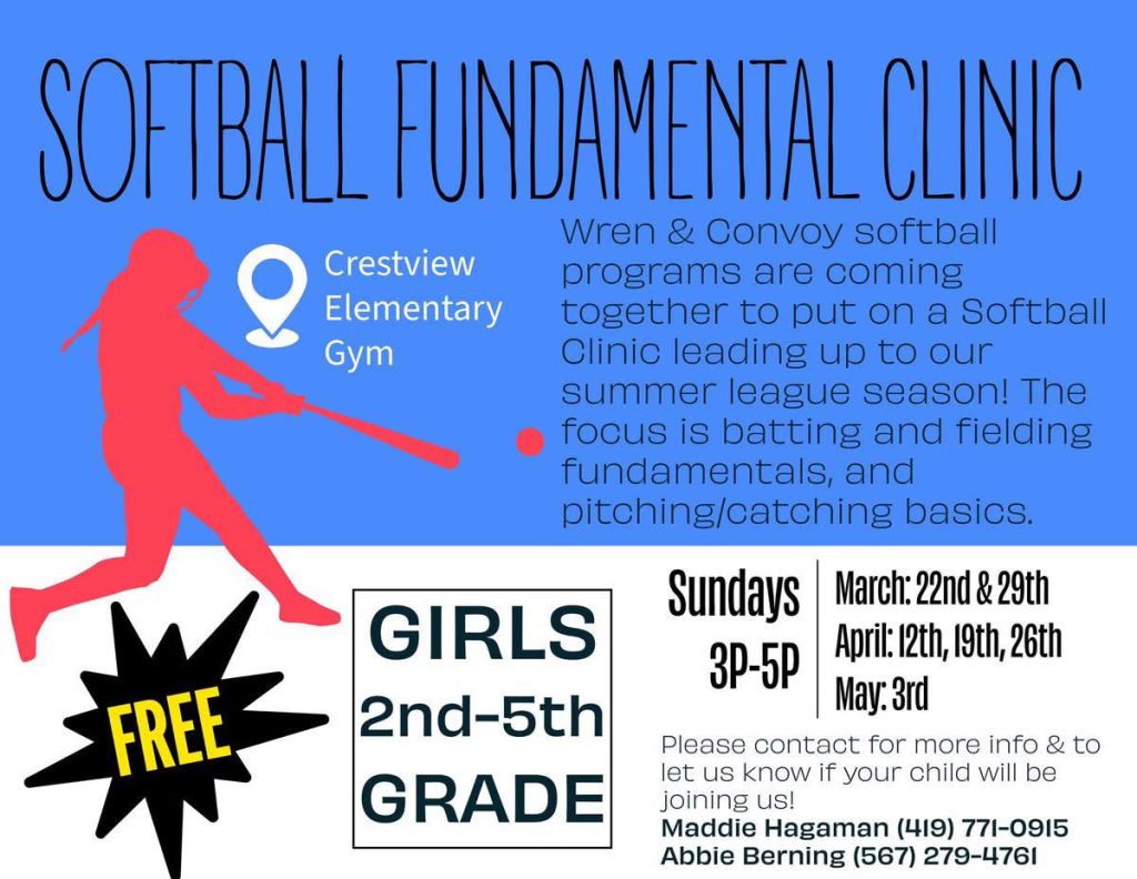 Wren and Convoy Softball Clinic grades 2-5