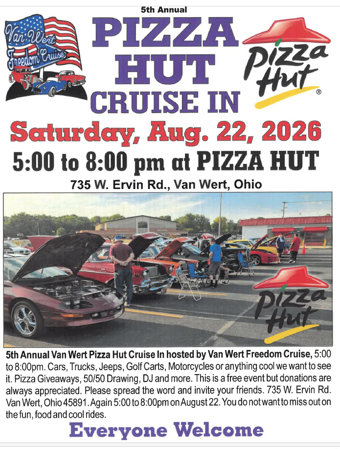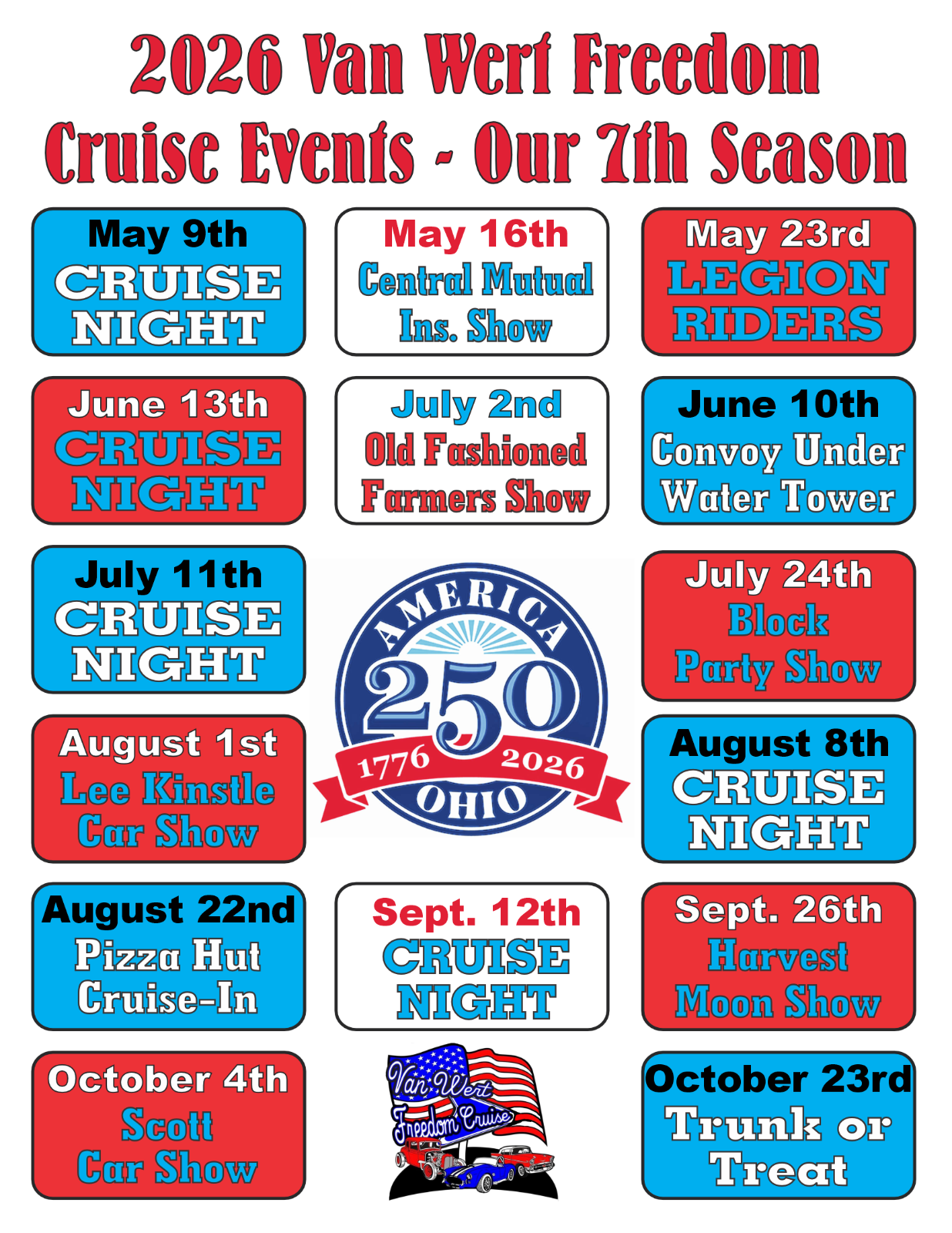 Please follow Van Wert Freedom Cruise on Facebook for more details and updated information.